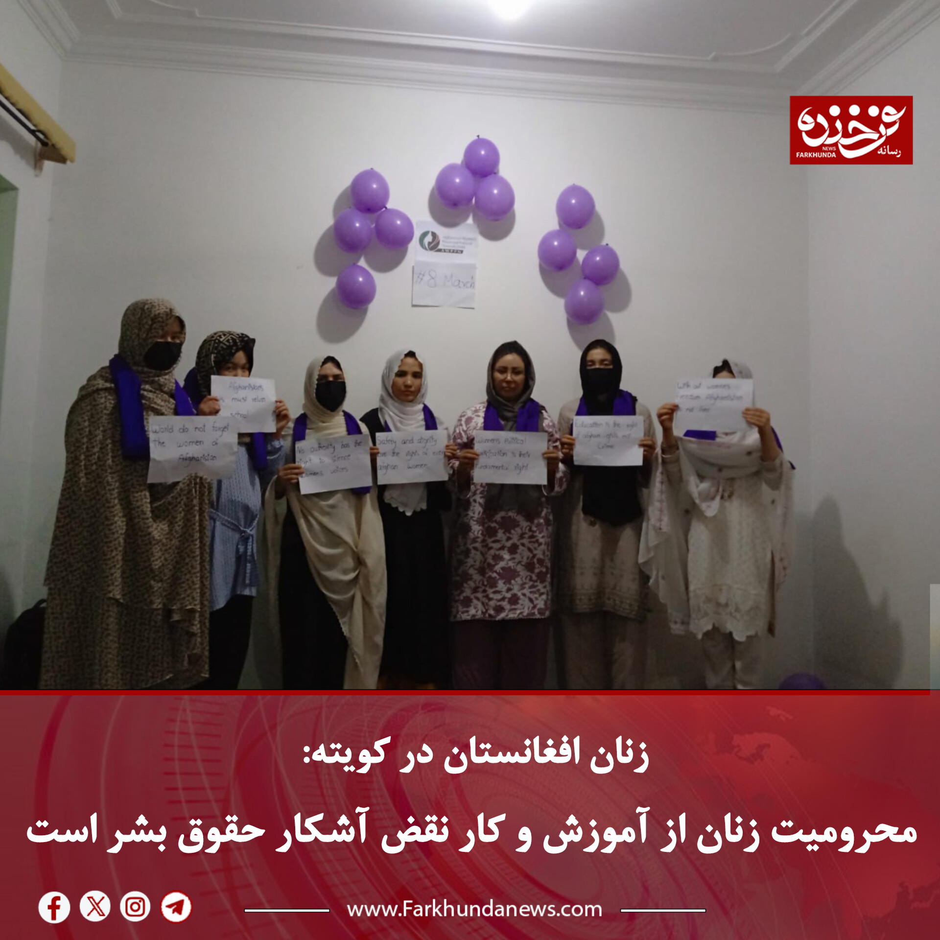 آنان همچنین تأکید کردند که با وجود فشارها و محدودیتهای گسترده، زنان افغانستان تسلیم ظلم و تبعیض نخواهند شد و به مبارزه برای حق، عدالت و آزادی ادامه خواهند داد.